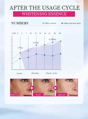 Moisturizing and translucent, effectively improving dullness and roughness, multi-layered brightening, reducing sedimentation, replenishing skin moisture, deeply moisturizing, delicate nourishment, allowing your skin to have its own spotlight.